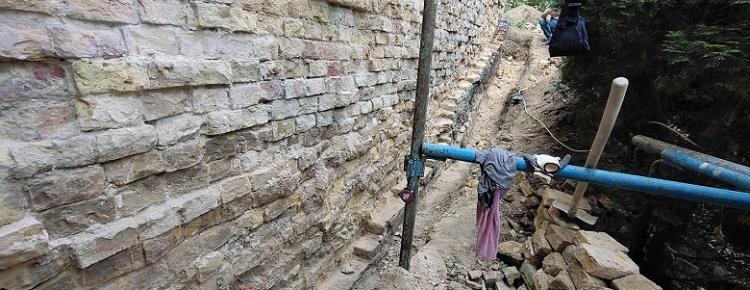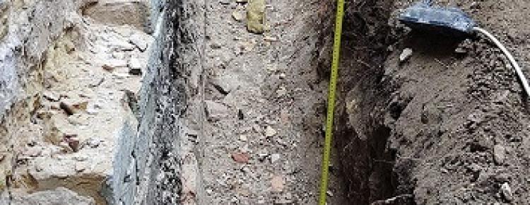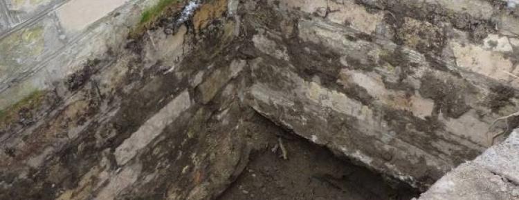 Іл. 3. Шурф 1 у місці стику домурованої автентичної та відновленої частини стіни (розкопки С. Тараненка, 2018 р.)