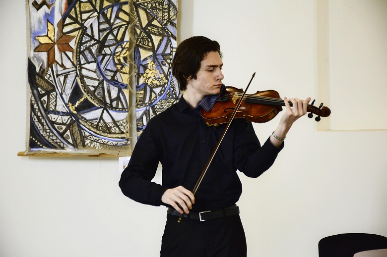 Простір експозиційної зали Дзвіниці наповнився чарівними звуками музики, мистецтва та краси. Вечір відкрила музика Вівальді та Баха у виконанні Євгена Гудименка, скрипаля, студента Національної музичної академії України народна артистка України Anzhelina Shvachka.