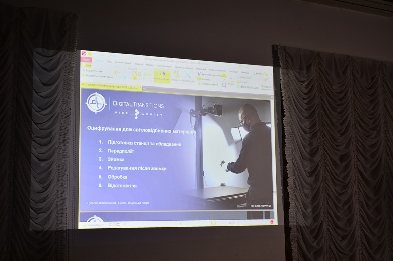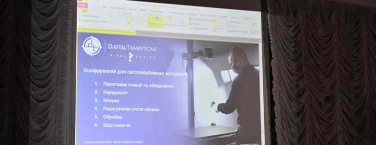 Під час навчальної програми фахівці ознайомилися із обладнанням, його технічними особливостями, опанували роботу з трьома видами освітлення при оцифруванні різних матеріалів (дерево, папір, живопіс).