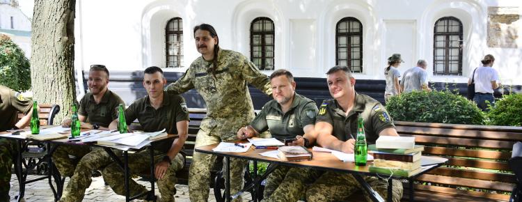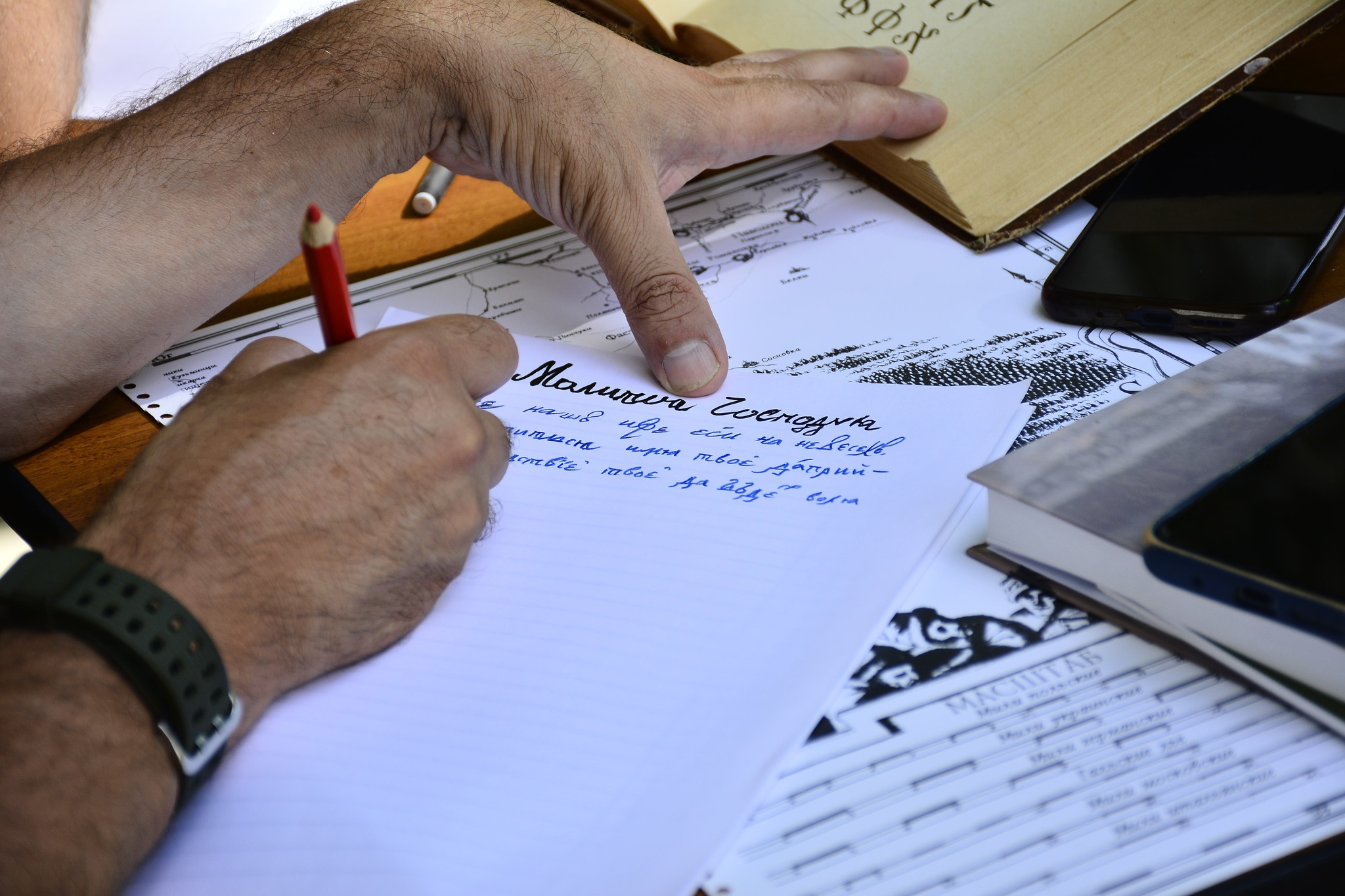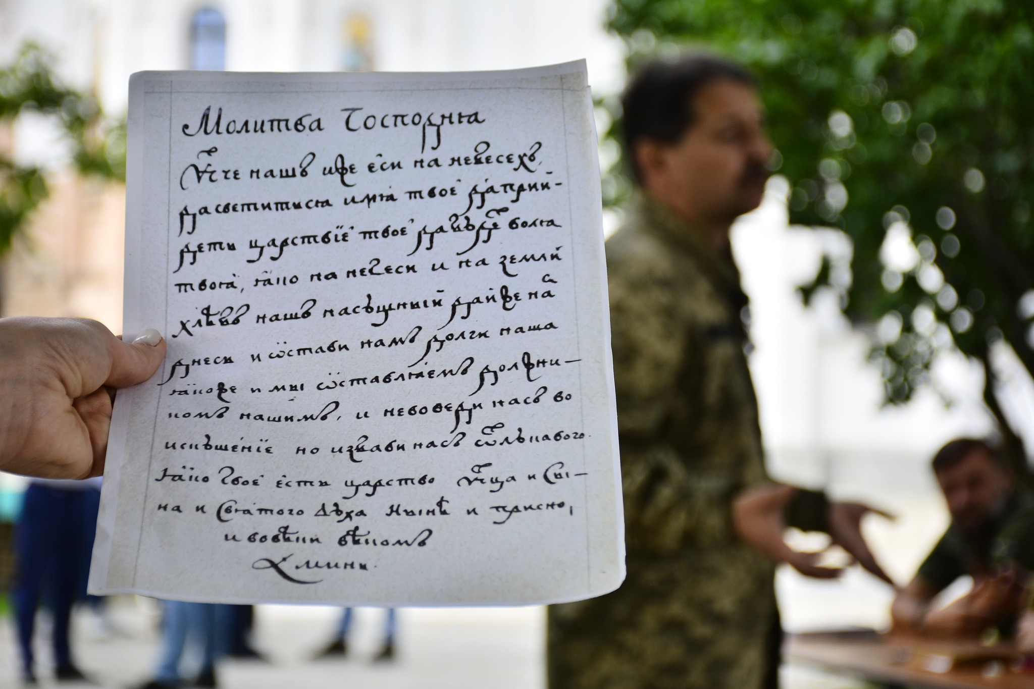 Для військових капеланів, учасників Програми "Духовне відновлення культурою" в Національний заповідник Києво-Печерська лавра відбувся майстер-клас "Пишемо молитву Господню "Отче Наш" з українського скоропису від Taras Kompanichenko військовослужбовця ЗСУ, кобзаря, бандуриста, Народного артиста України.