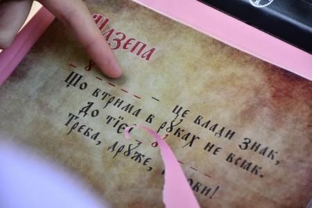 Потім учасники дійства розділилися на дві команди і розпочали справжню пошукову роботу стежками гетьмана. По завершенні команди семикласників отримали настанову до Дня знань та пам’ятні відзнаки із рук самого Івана Мазепи, роль якого виконав начальник згаданого відділу Олег Топилко.