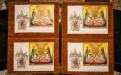 Сюжет поштового випуску поєднав іконостас Успенського собору (цьогоріч святкуємо 950-ліття від часу закладання храму), колоритних колядників з восьмикутною зіркою та традиційний український вертеп. З обох боків іконостаса зображено прп. Антонія і Феодосія Печерських – засновників лаври. Автор блока, листівки, конверта та штемпеля “Перший день” – заслужений художник України Миколай Кочубей. Він створив і торішній різдвяний випуск “Щедрик. Carol of the Bells”.
