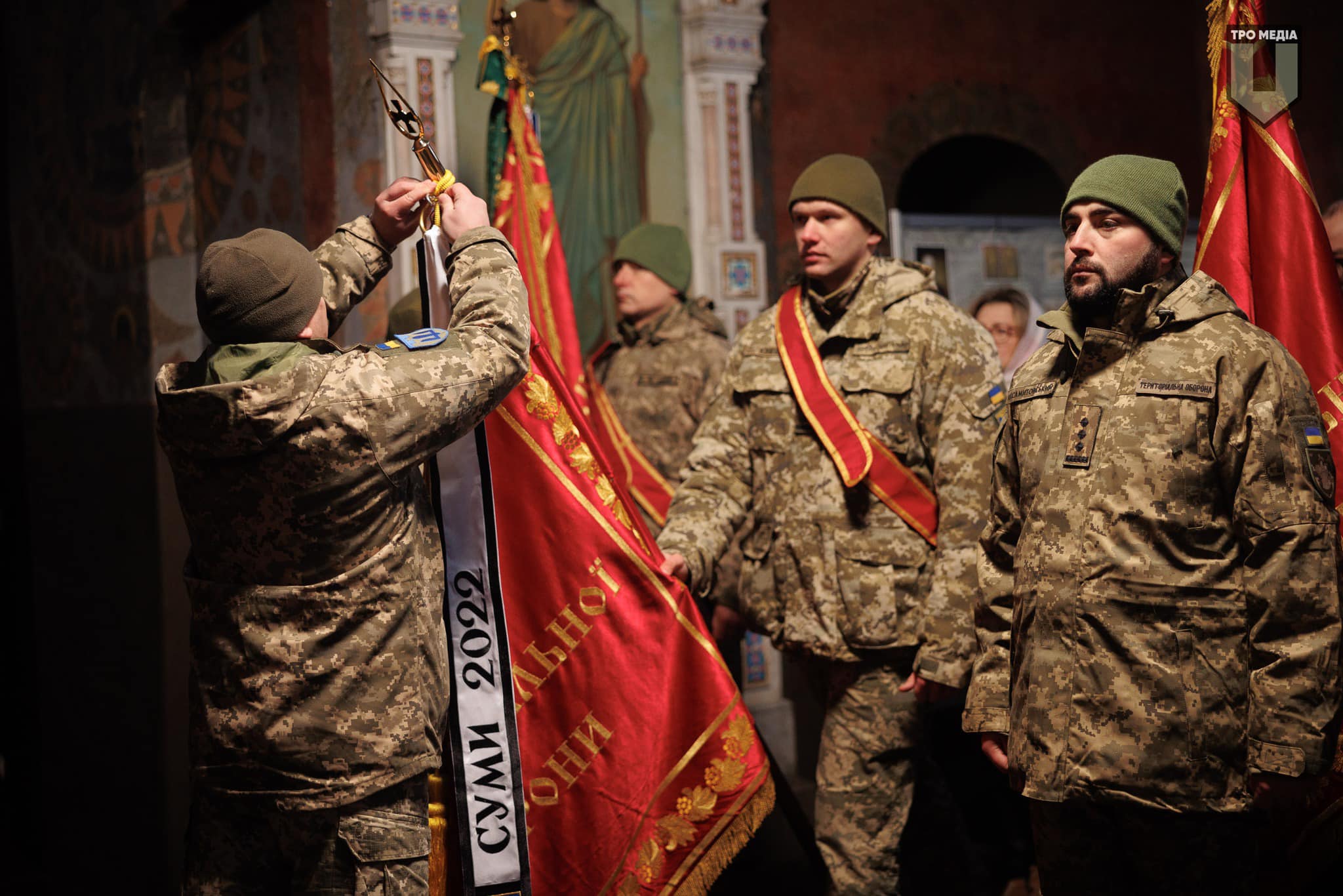 Командувач Сил територіальної оборони ЗСУ генерал-майор Анатолій Баргилевич вручив відзнаки командирам бригад. Освятив стрічки до Бойових Прапорів офіцер капеланської служби Командування Сил ТрО ЗСУ, молодший лейтенант капеланської служби, отець Андрій Апаров.