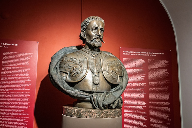 Побачити найточніше скульптурне зображення Івана Мазепи можна у першій залі виставки “Мазепа. Стратегія європейської України” у 4-му корпусі Заповідника (Келіях соборних старців).