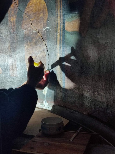 Очистили стінописи від багаторічного бруду та кіптяви, укріпили фарбовий шар і врятували втрачений тиньк у місцях відшарування шляхом ін’єктування спеціальним розчином. Завдяки шпаклюванню та тонуванню поверхонь вдалося стабілізувати стан розписів та зберегти їхню автентичну основу.