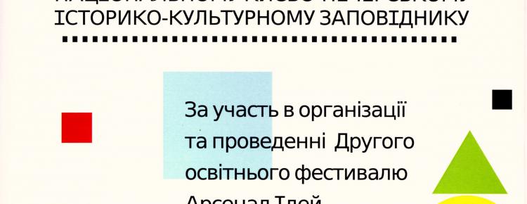 Национальный Киево-Печерский историко-культурный заповедник, в частности отдел музейно-образовательной работы, присоединились к активному участию во Втором интерактивном образовательном фестивале «Арсенал идей», который состоялся 1 – 5 июня 2016 года в Художественном Арсенале.