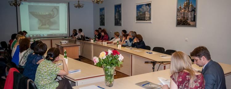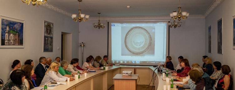 После экскурсии по выставке «Возрожденные сокровища Киево-Печерской лавры» был презентован доклад ученого секретаря заповедника Горской Н.Д. «Социология музея сегодня (на примере Национального Киево-Печерского историко-культурного заповедника)».