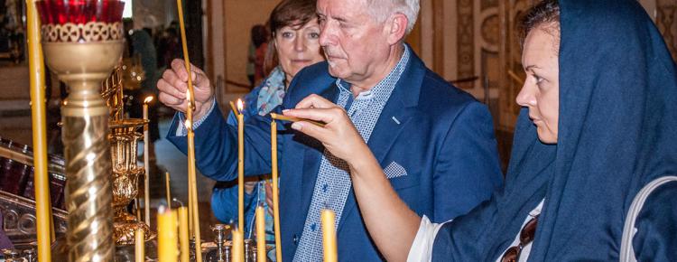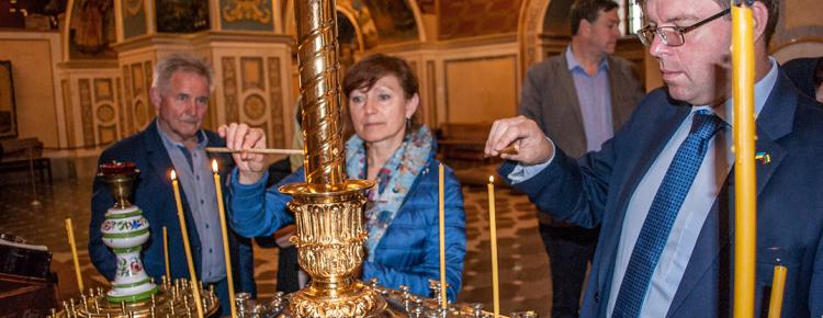 Почетных гостей встречал Генеральный директор заповедника Л. Михайлина. Он ознакомил присутствующих с историей Киево-Печерской лавры.