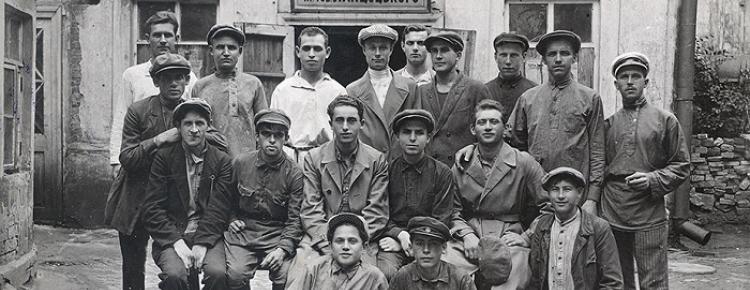 1. Робітники біля ґанку корпусу № 11 – хлібозаводу № 1 ім. тов. Ланцуцького. 1920-ті роки. (Світлина з колекції Національного Києво-Печерського історико-культурного заповідника)