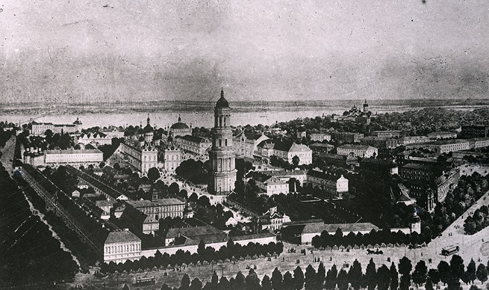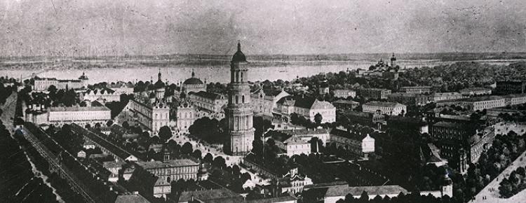 4. Загальний вигляд Києво-Печерської лаври початку ХХ ст. На передньому плані можна побачити вагони київської міської залізниці [НЗ «Києво-Печерська лавра», інв. № КПЛ-Н-6263]