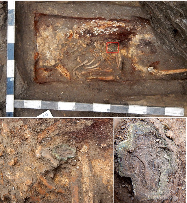 Іл. 1. Поховання 299 із дерев’яним хрестом на розчищеному кістяку