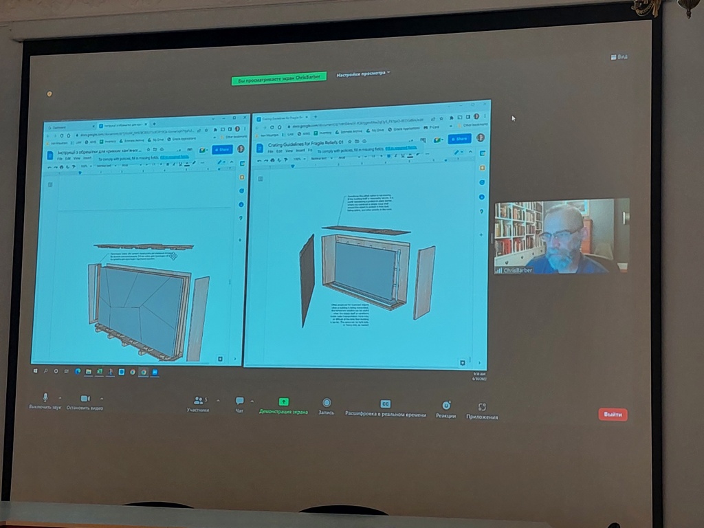 За результатами співпраці Національного заповідника «Києво-Печерська лавра» та експертів «Ініціативи порятунку культури Смітсонівського інституту» фахівці з пакування і транспортування музейних предметів Кріс Барбер та Ешлі МакГрю презентували креслення, за якими будуть виготовлені спеціальні ящики для зберігання унікальних монументальних сланцевих плит з рельєфними композиціями ХІ ст. з фондової колекції Заповідника.