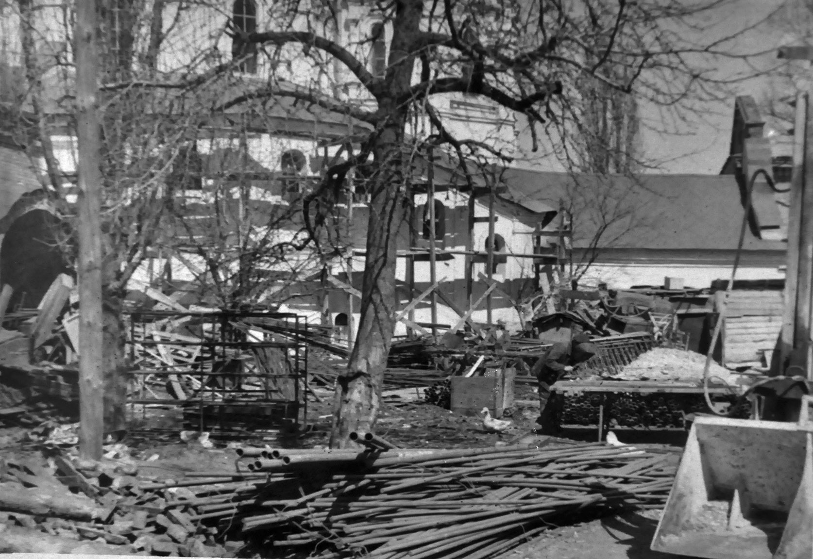 15. Подвір’я біля західного фасаду церкви під час реставраційних робіт