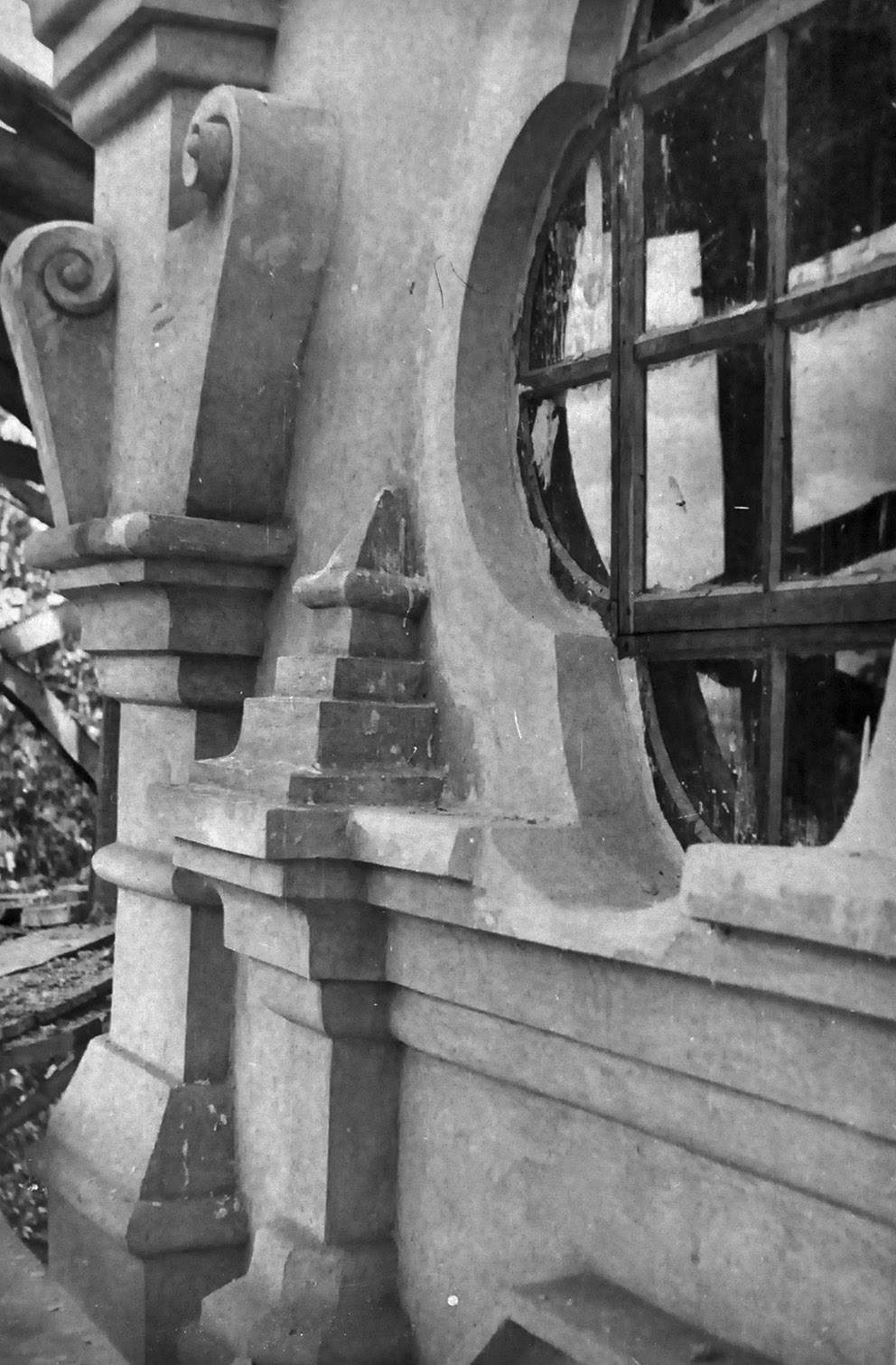 18. Завершення пілястри і фрагмент хрестоподібного вікна після реставрації. 1959 р.