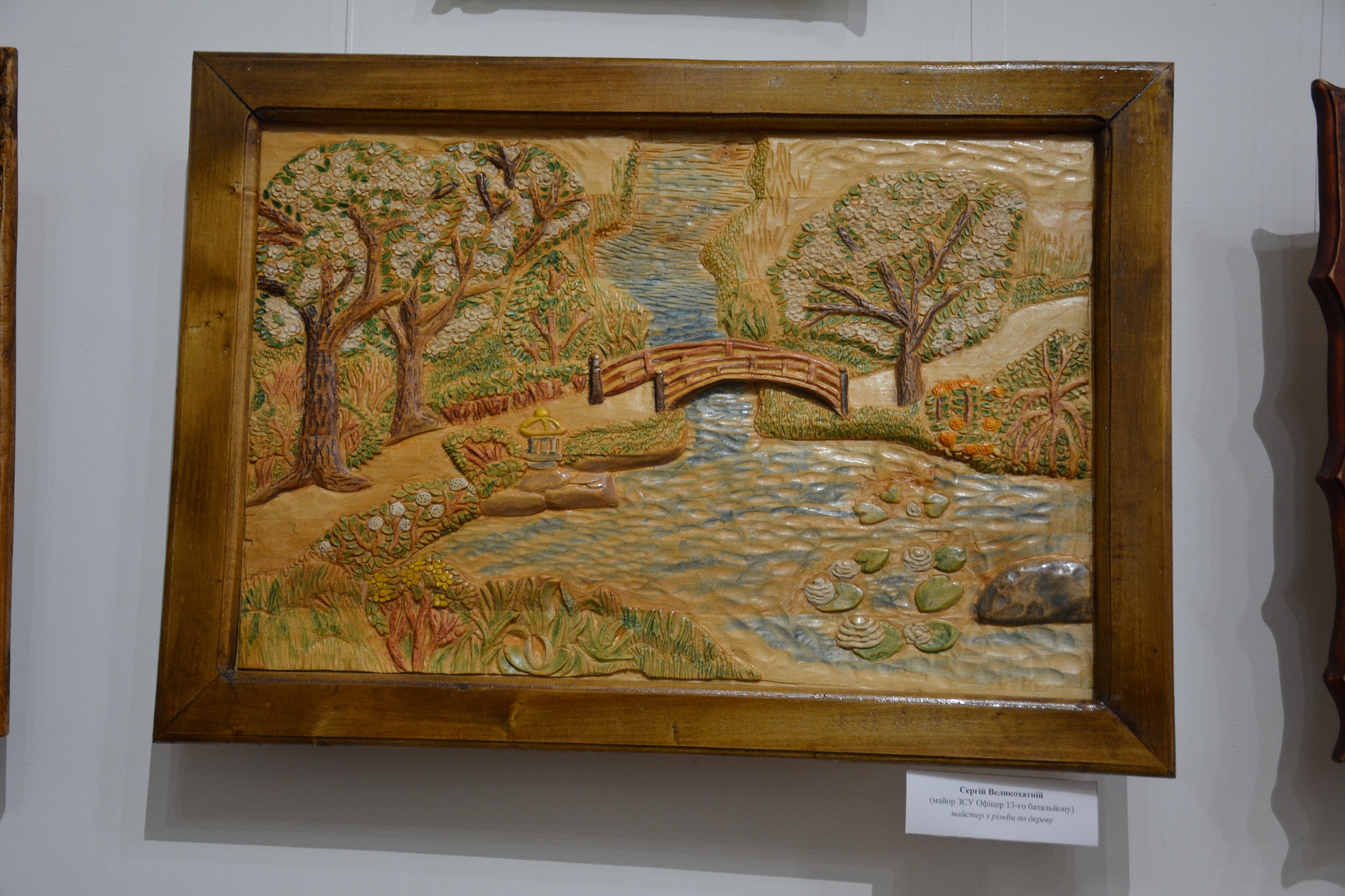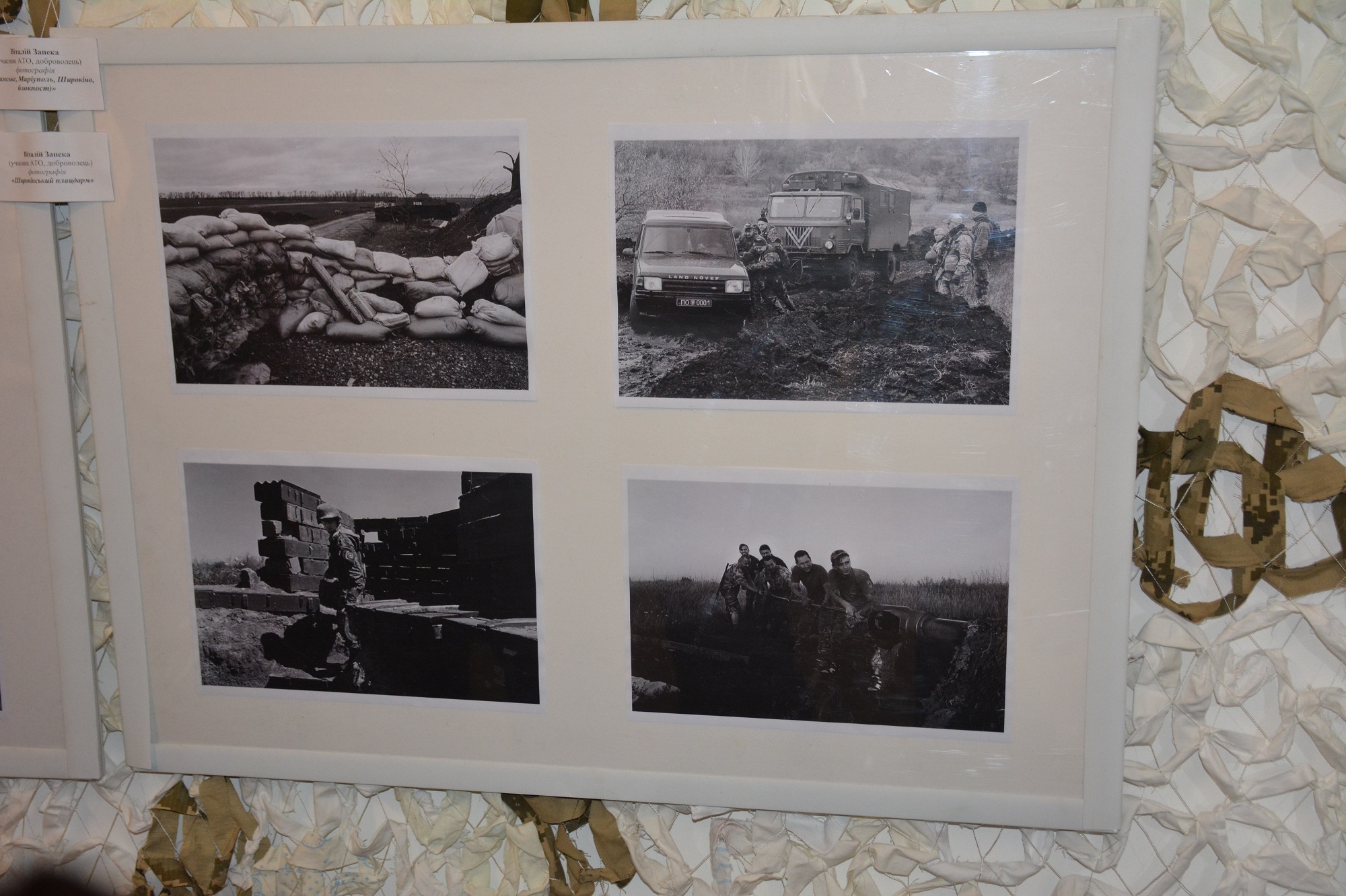 В експозиції представлено понад 300 робіт. Це – картини Павла Кулика, Василя Піддубного, Яни Сєдової, Юлії Євдокимової, Вадима Лемешка, Руслана Кашаюка, Світлани Андрійчук; вишиті бісером та хрестиком картини і ікони Олександра Надорожняка, Ігоря Лугіна та Тетяни Дрьомової; різьблення по дереву Сергія Великохатнього; вироби зі шкіри і дерева Павла Балабухи та Андрія Музиченка; мило ручної роботи Олексія Грищенка; ляльки-реборни Сергія Бондаря; художньо розписані фрагменти ящиків для боєприпасів й гільзи Світлани Логуш-Луців та волонтерки Мар’яни Доріченко; воєнні світлини та портрети українських героїв Леоніда Шрайбікуса, Віталія Коруна та Віталія Запеки; дизайнерський розпис одягу Лесі Борсук; сувенірна продукція Світлани Анісімової та Світлани Ребрикової. Варті уваги друковані та рукописні твори понад 15-и авторів: Віктора Залевського, Олени Макарчук, Тамари Горіха Зерня, Патріка Адамса, Сергія Сайгона, Юрія Руденка, Олександра Бурбела, Олексія Петрова, Василя Піддубного, Олега Федотова, Сергія Дека, Германа Дубініна тощо.