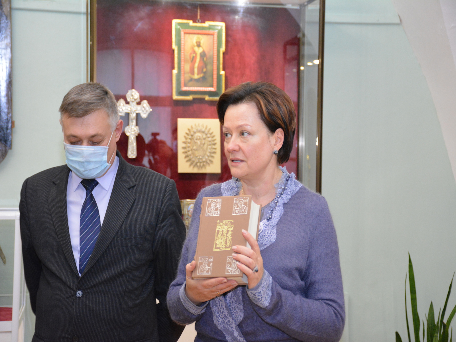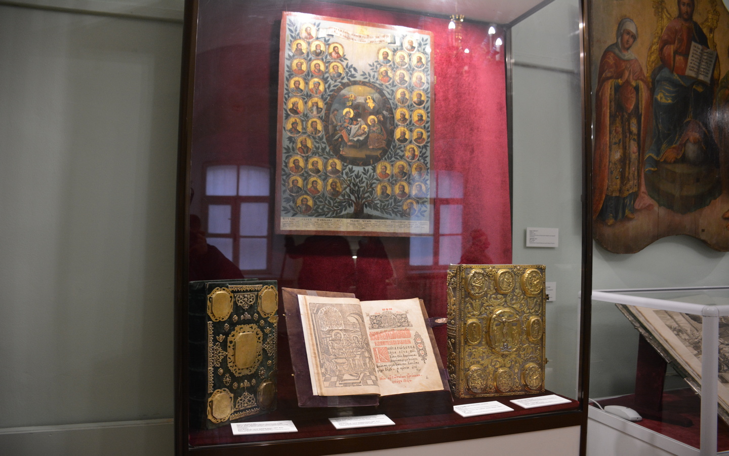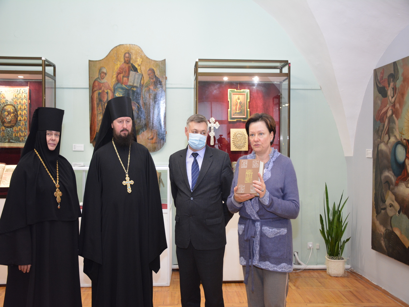Заступник начальника науково-дослідного відділу вивчення мистецької спадщини Ірина Шульц ознайомила всіх бажаючих із експозицією, де представлено рідкісні Євангелія: рукописне кінця XVI – початку XVII ст., друковані, що було видано Печерською, Острозькою, Почаївською та Львівською братською друкарнями. Варті уваги рукописні Євангелія і Апостол, переписані в часи комуністичних гонінь 20-х років XX ст.