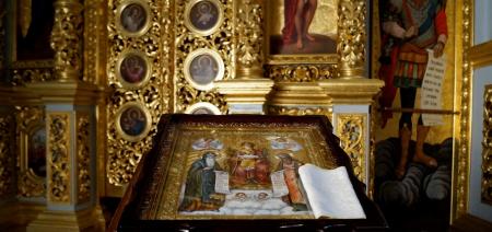 12. В інтер’єрі Успенського собору. Біля ікони Богоматері Печерської. Фото М. Кальченко, 2017 р.
