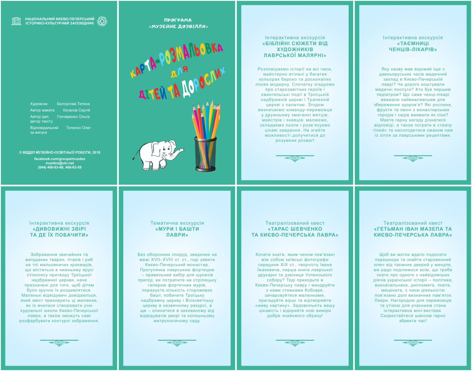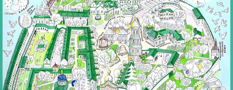 Карта-розмальовка для дітей та дорослих, не будучи картою в географічному розумінні, допоможе не заблукати на Верхній території заповідника. До уваги відвідувачів - візуальна розповідь з безліччю деталей, які безпомилково вкажуть на об'єкт, і мінімумом написів, які подають назви пам'яток, а також зауваги у неформальному стилі. З її допомогою ви знайдете зображення слона у Троїцькій надбрамній церкві, величезну камінь- кладку на Соборній площі, дізнаєтесь, на які фрукти багатий Митрополичий сад... Карту створено в стилі віммельбухів - книжок, що складаються з деталізованих малюнків, призначених для уважного розглядання. Наша ж карта- ще й розмальовка, яка у гарному сенсі провокує креативність і справді багато розказує про архітектуру і рослинність маленького міста з великою історією.