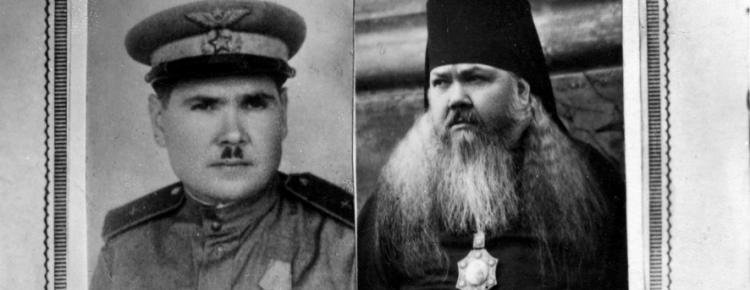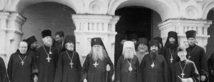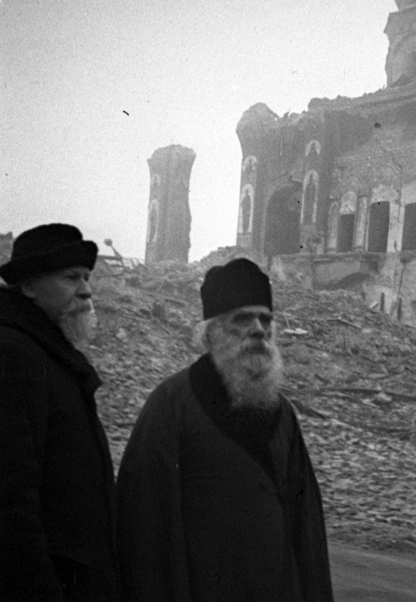 2. Член Державної комісії з розслідування нацистських злодіянь митрополит Крутицький Миколай (Ярушевич) і лаврський намісник, архімандрит Валерій біля іконостаса Троїцької надбрамної церкви.