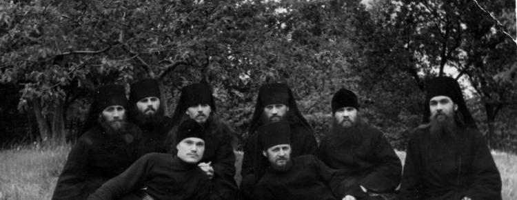 9. Груповий портрет братії: монахи Ігнатій, Павел, Мардарій, Аврамій, Никон, Сисой. На передньому плані: послушник Мефодій, монах Ігор.