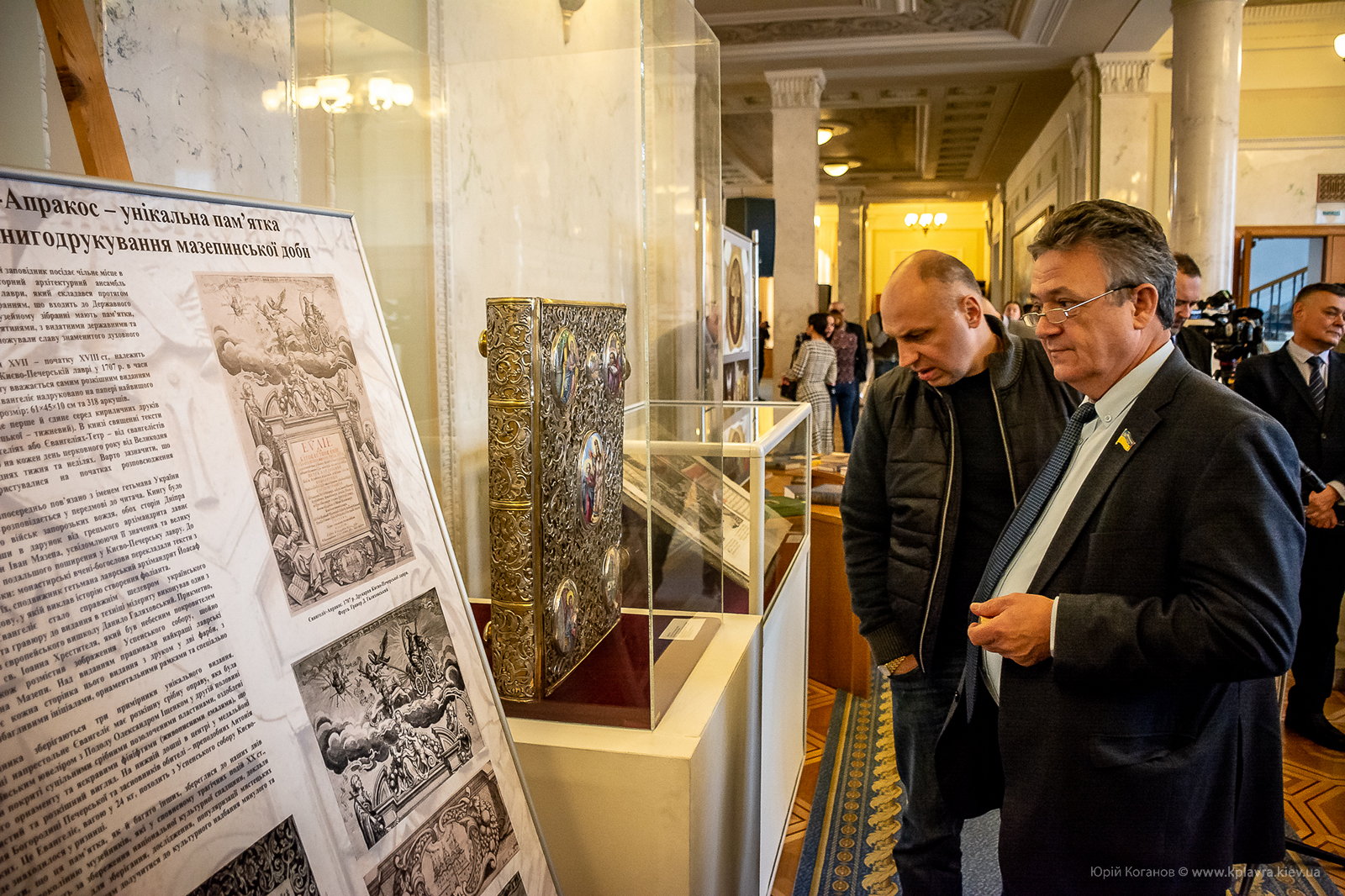 До Дня української писемності та мови у приміщенні Верховної Ради України у рамках фотовиставки «Києво-Печерська лавра – святиня України» Національний Києво-Печерський історико-культурний заповідник презентував унікальні пам’ятки українського книгодрукування - два напрестольні Євангелія у срібних окладах, видані у друкарні Києво-Печерської лаври у 1707 р. в часи гетьманства Івана Мазепи. Книги великого формату є найрозкішнішими виданнями лаврської друкарні за всі 300 років її діяльності. Раритетні Євангелія Апракос (в перекладі з грецької – святковий) – це перші і єдині видання кириличних стародруків кінця ХVІІ – початку ХVІІІ ст.
