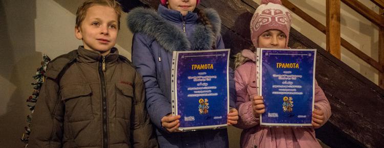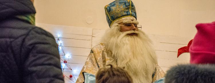 Свято нагородження розпочалося із зустрічі дітей з начальником відділу музейно-освітньої роботи Заповідника Олег Топилко в образі Святого Миколая та його помічниці, співробітниці музейного комплексу Олени Балабанової. Діти покликали головного винуватця урочистостей, і господар Резиденції привітав маленьких гостей тематичними віршами та словами вдячності за участь у конкурсі.