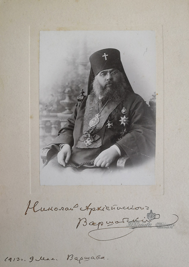 На наступному фото – Миколай, архієпископ Варшавський і Привісленський (Зіоров, 1851–1915). На звороті – присвята професору Київської духовної академії, багатолітньому завідувачу Церковно-археологічного музею М. І. Петрову. Світлина могла потрапити в фонди Лаврського музею 1923 року у складі колекції колишнього ЦАМу.