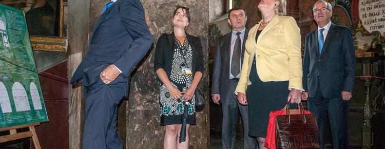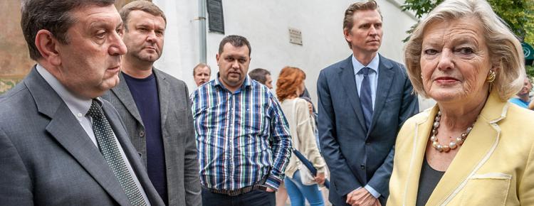 Для поважних гостей було проведено екскурсію по Заповіднику. Члени делегації відвідали Троїцьку надбрамну церкву, Успенський собор, Трапезну церкву з палатою, оглядовий майданчик та Ближні печери.