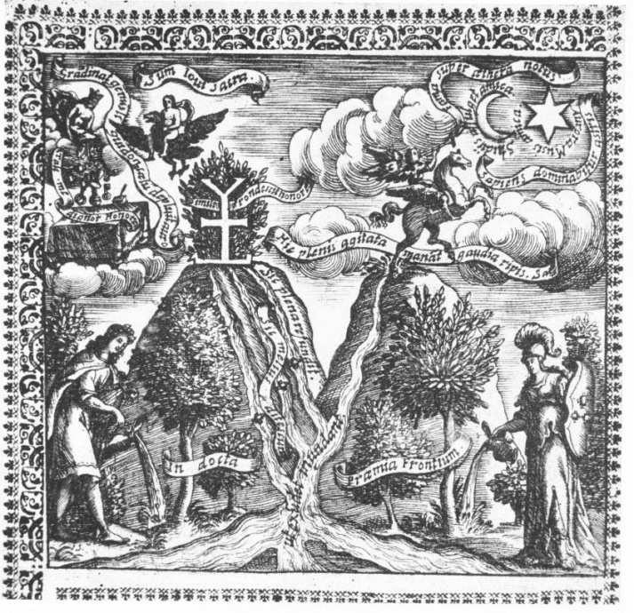 Іл. 1. Оформлення панегірика «Hippomenes Sarmacki» («Гіппомен Сарматський») з геральдичною та шлюбною символікою