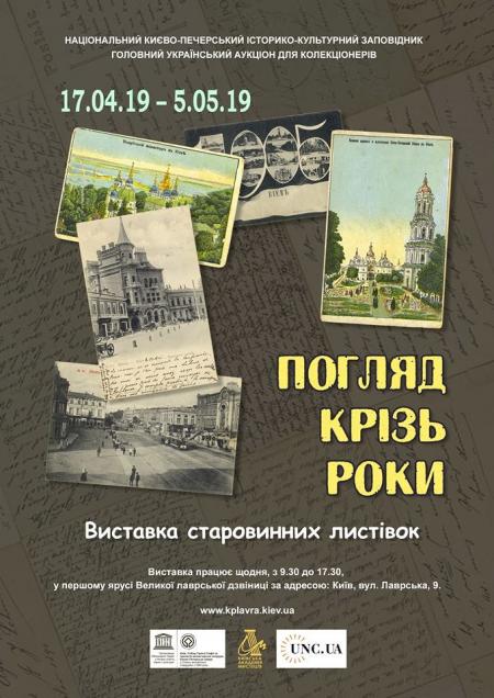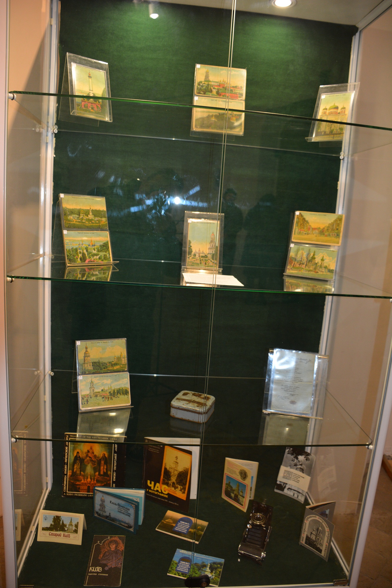 На виставці представлено близько 100 екземплярів поштових, стереоскопічних листівок ХІХ–ХХІ ст., альбом із світлодруками «Види Києва» видавництва Стефана Кульженка, з іменем якого пов’язана ціла епоха розвитку друкарської справи в Україні. Представлені старовинні поштівки виготовляли відомі в ті часи видавництва – Києво-Печерської лаври, Північного (стокгольмського), Д. Маркова, А. Ріхтера, О. Ренара. Родзинка виставки: примірники з видами Києво-Печерської лаври, Військового Микільського монастиря, Десятинної церкви та інших пам’яток культури та історії Києва, які створені студентами Київської дитячої Академії мистецтв.