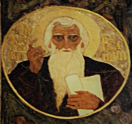 І.С. Їжакевич. Композиція «Свт. Іоанникій Великий». Арка екседри Трапезної церкви. 1905 р.