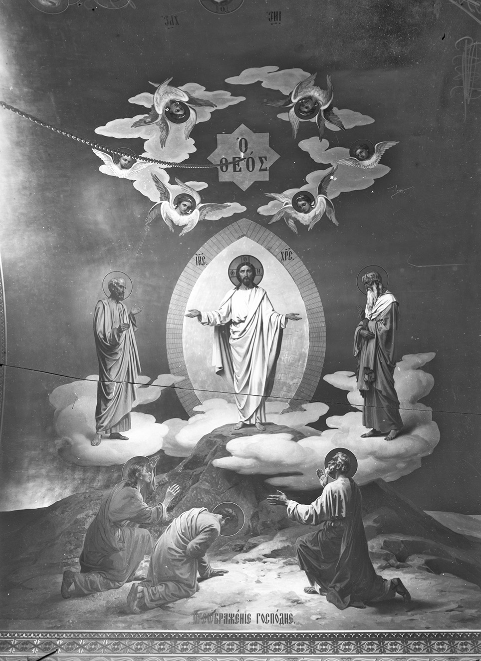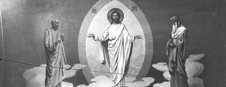 Іл. 2. Композиція «Преображення Господнє» на плафоні приділу Великої Печерської церкви (Успенського собору) Києво-Печерської лаври, виконана відповідно до проєкту С. М. Лазарєва-Станіщева і В. П. Верещагіна. Фотографічний знімок початку ХХ ст. [інв. № КПЛ-Н-383]