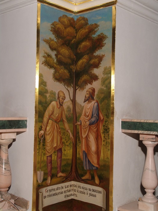 Іл. 10. Притча про смоківницю. Розписи у внутрішньому куті хрещатого стовпа Успенського собору. 2010-ті рр.