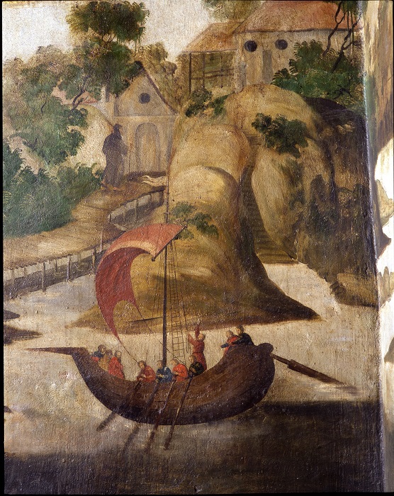 Іл. 17. Річковий пейзаж. Фрагмент композиції «Видіння св. ап. Іоанна Богослова». Розписи південної стіни південного нефа Троїцької надбрамної церкви. 20-ті – 30-ті рр. XVIII ст.