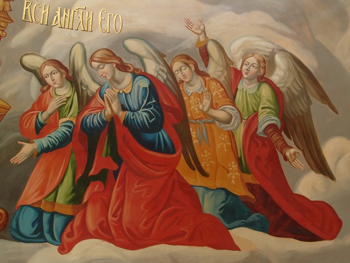 Іл. 18. Ангели. Фрагмент композиції «Св. Трійця Новозавітна». Розписи центральної бані Успенського собору. 2010-ті рр.