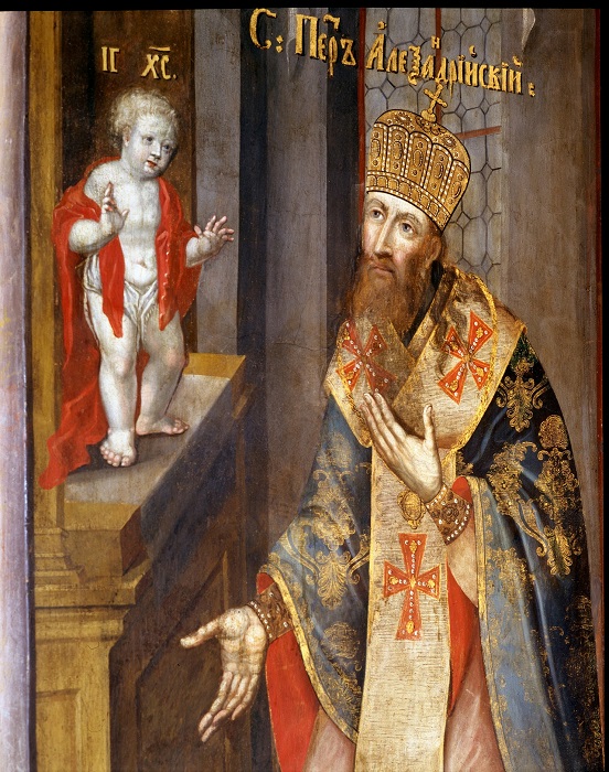 Іл. 9. Явлення Христа Дитини св. Петру Александрійському. Фрагмент композиції «Перший Вселенський собор». Пілястра західної стіни центрального нефа Троїцької надбрамної церкви. 20-ті – 30-ті рр. XVIII ст.