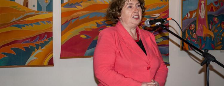 Людмила Білоус привітала присутніх з відкриттям виставки талановитої художниці, що невтомно продовжує образотворчу традицію відомої династії Саєнків та майстерно поєднує у візуальній творчості символічну історію минулого нашого народу з його сьогоденням.