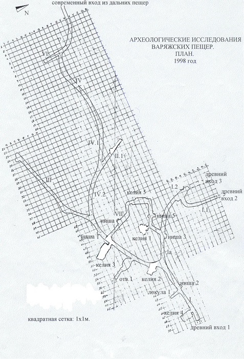 - Зведений план Дальніх печер Київської лаври (давньоруські лабіринти не заштриховано).
