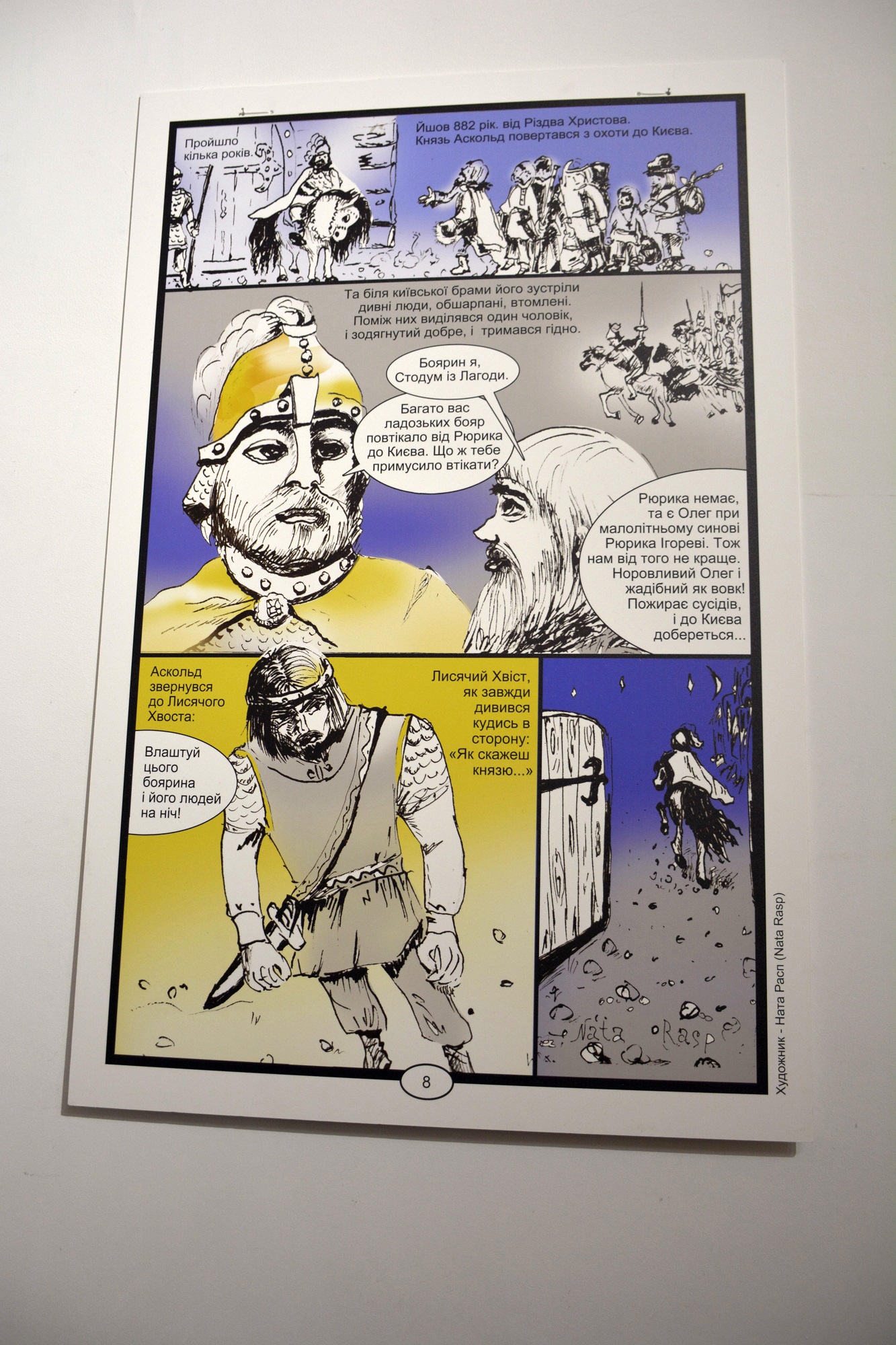 Також експонується серія графічних коміксів із сюжетами подій доби Київської Русі за часів Аскольда: похід князя на Візантію, хитрощі боярина Лисячий хвіст, передбачення мудрих волхвів, боротьба за владу тощо. Ряд талановитих українських художників, наймолодшій з яких 13 років, спробували відтворити внутрішній світ, почуття і прагнення наших легендарних пращурів.