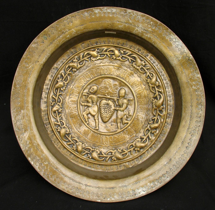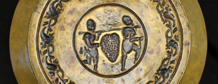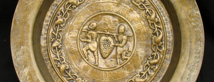 Сьогодні у рубриці «Мистецька спадщина» ми ознайомимо Вас із цікавим твором декоративно-ужиткового мистецтва з колекції Заповідника – олов’яним блюдом із композицією «Соглядатаї землі Ханаанської» (КПЛ-М-7928).