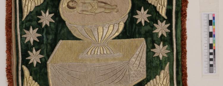 До фондової збірки Заповідника покрівець у майже знищеному стані передано з руїн Успенського собору в 1947 році. Пам’ятку врятовано зусиллями реставраторів та музейників, і у відновленому вигляді витвір гаптарського мистецтва вперше буде презентовано в експозиції.