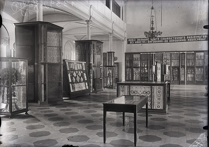 4. Вітрина відділу шиття й тканини Всеукраїнського музейного городка. 1920‑ті рр. [НКПІКЗ, КПЛ-Ф-9115]