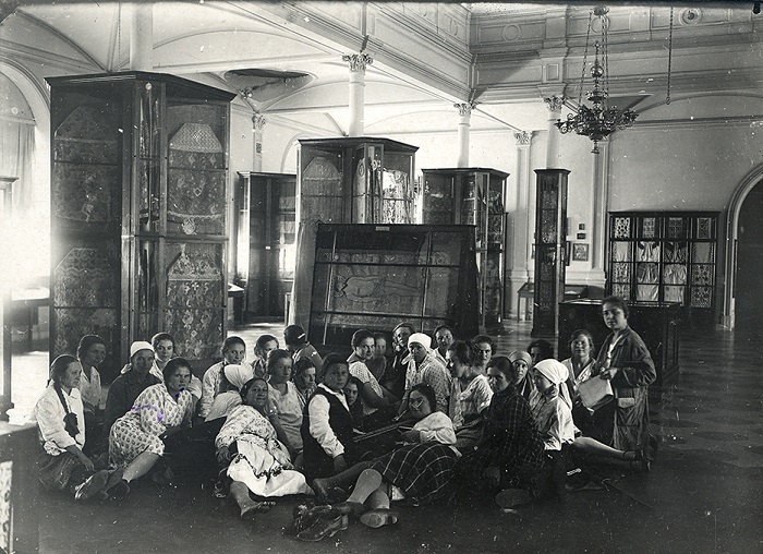 6. Відвідувачі відділу шиття й тканини Всеукраїнського музейного городка із Марією Новицькою. Друга половина 1920-х – початок 1930-х рр. [НКПІКЗ, КПЛ-Ф-10693]