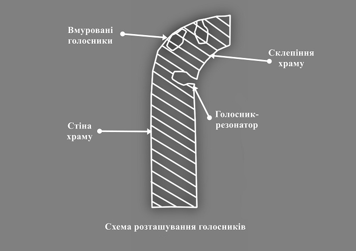Іл. 3. Схема розміщення голосників у давньоруській храмовій архітектурі