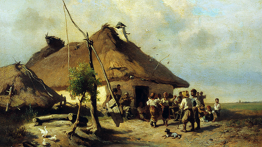 Іл. 1. Іван Соколов. «Біля шинку» (1864) (З колекції Закарпатського обласного художнього музею імені Йосипа Бокшая)