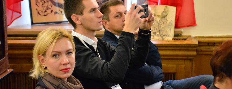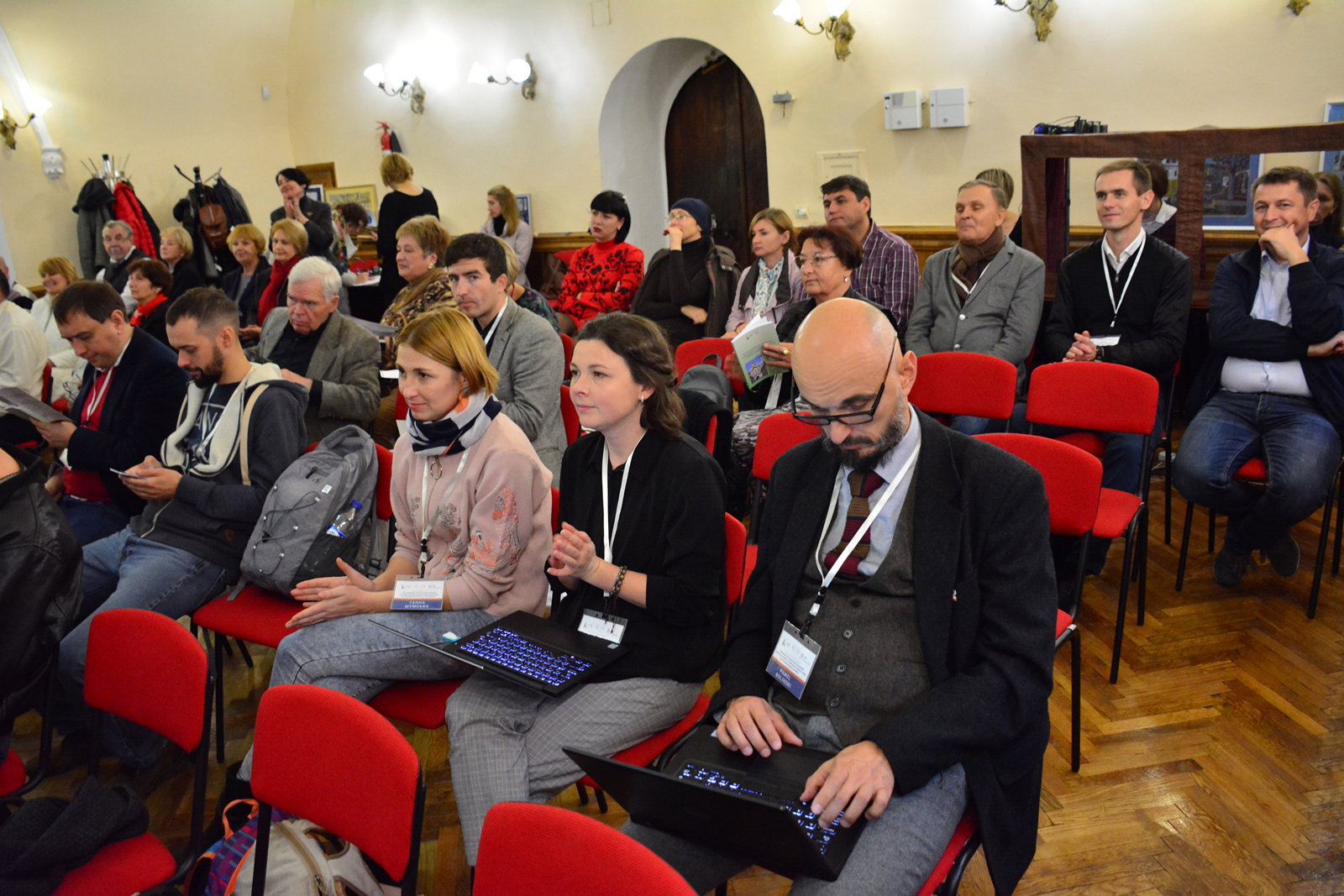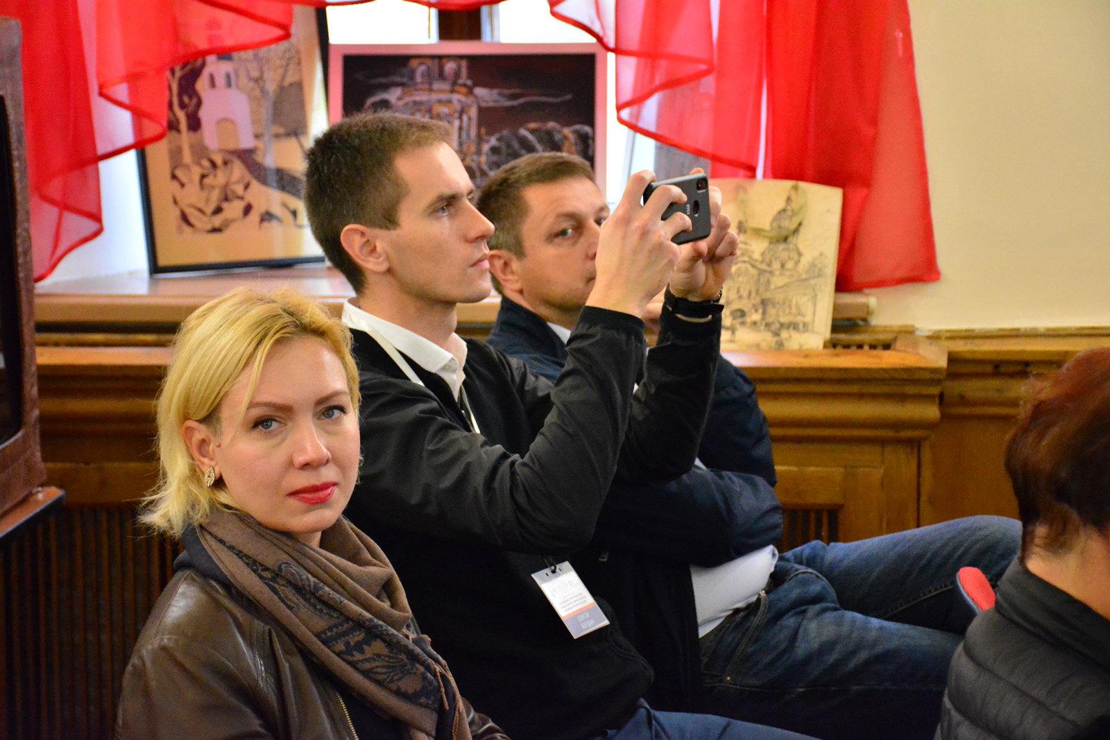 Учасники дводенної науково-практичної конференції обговорюють проблеми реставрації пам’яток архітектури, діляться досвідом та новими науковими доробками. Всі виступи викликають зацікавлення, жваво обговорюються.
