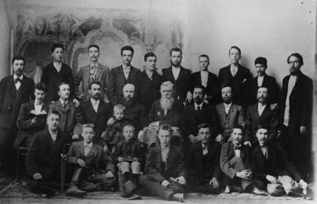 1. Бригада художників, що розписувала Успенський собор. У другому ряду в центрі – художник А. О. Лаков та академік В. Д. Фартусов. Кінець ХІХ – початок ХХ ст. (КПЛ-Ф-13553-13555)