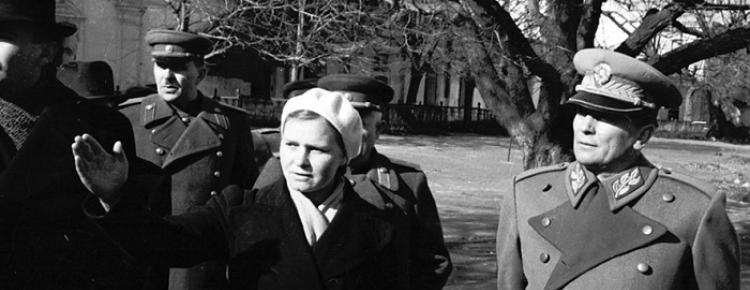 2. Маршал Й. Броз Тіто слухає оповідь екскурсовода. Квітень 1945 р.