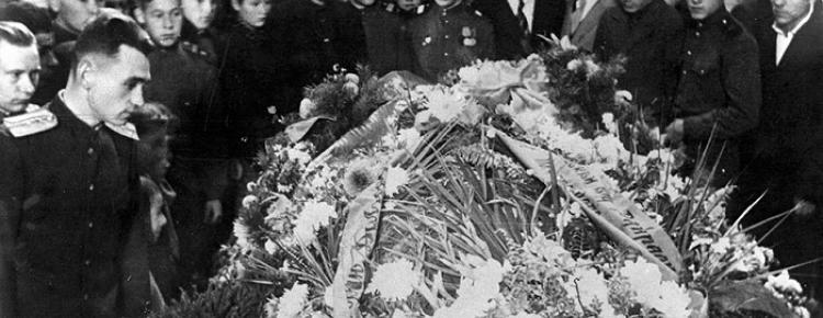 9. Група військових в церкві Спаса на Берестові біля кенотафа князя Юрія Долгорукого. 1947 р.