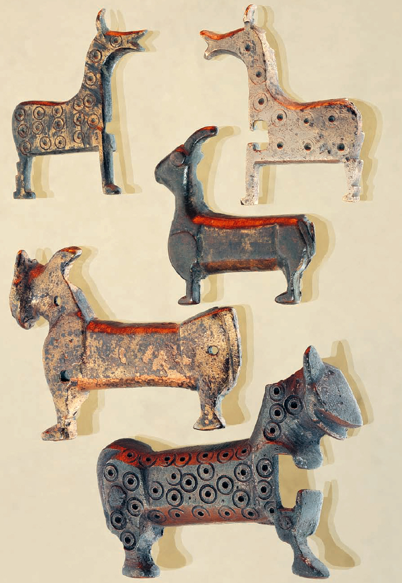 Навісні зооморфні замки з’явилися ще у римський час, надалі їх використовували і у візантійську епоху, відтоді відомі і в Середній Азії, особливо в Ірані. Зв’язками з останнім можна пояснити появу такого типу виробів і у Середньому Поволжі. Виробництво зооморфних бронзових замків у Волзькій Болгарії в ХІ–ХІІІ ст. було дуже поширеним, майстри робили їх у вигляді різних тварин: левів, баранчиків, собак, коней. З падінням Волзької Болгарії у 1236 р. ця традиція не перервалася, а продовжувалася у золотоординський час, фактично виготовлення їх набуло серійного характеру. У цей період практично зникає виробництво замків-левів, але масово поширюються замки у вигляді коників – найулюбленішої і найнеобхіднішої тварини середньовічних народів.
